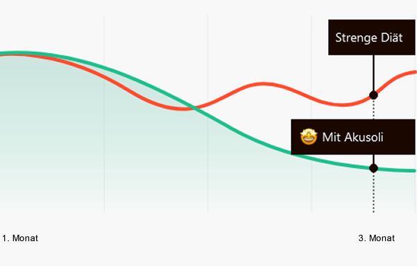 Dauerhafte Ergebnisse werden durch das Verwenden von Akusoli erzielt, nicht durch restriktive Diäten.